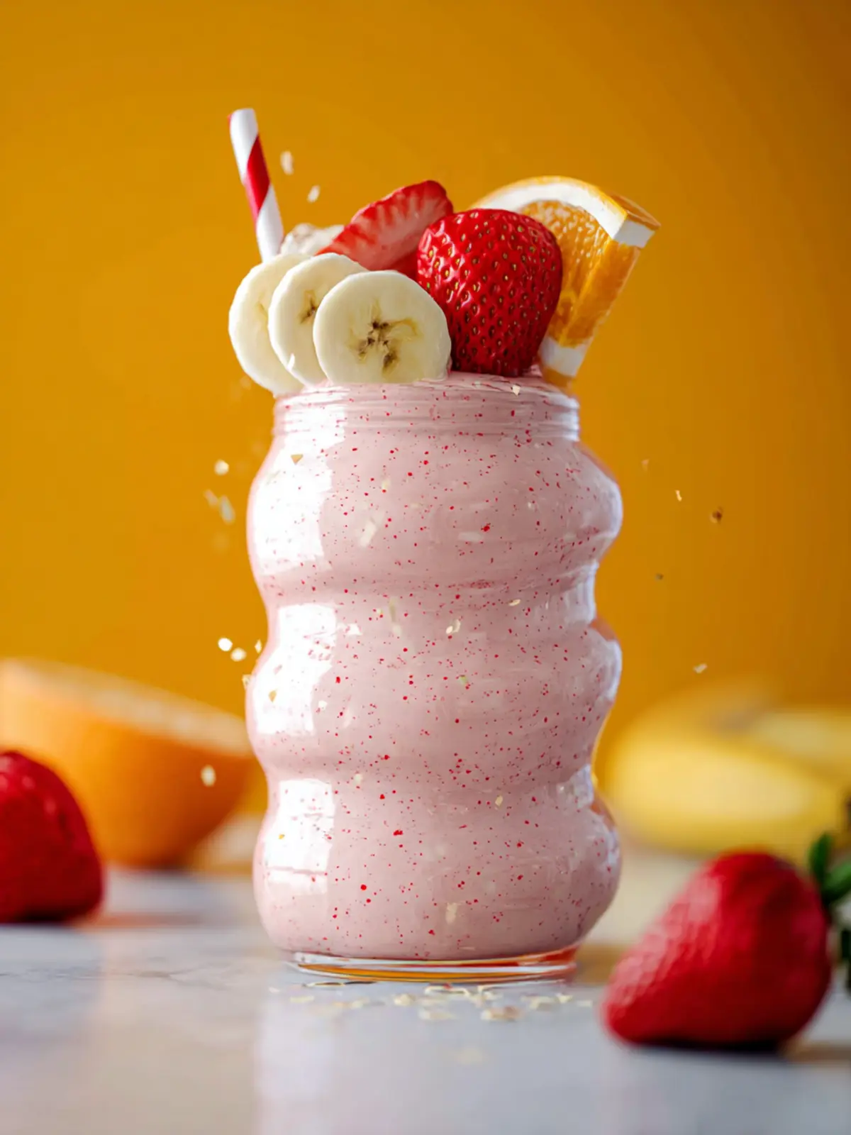 • Layered Flavors: Each ingredient adds its own unique touch—ripe bananas bring natural sweetness, juicy strawberries contribute a refreshing tartness, while zesty oranges brighten the overall flavor. Together, they create a deliciously balanced smoothie that feels like a treat.