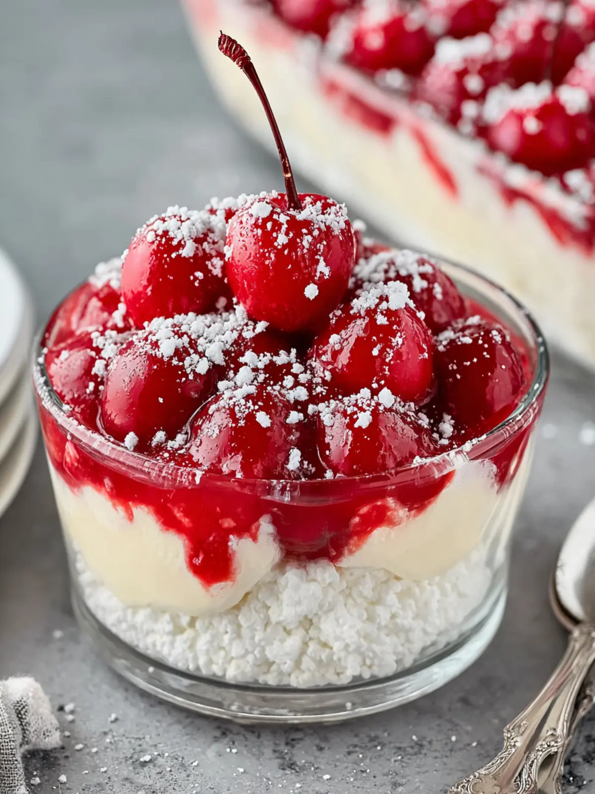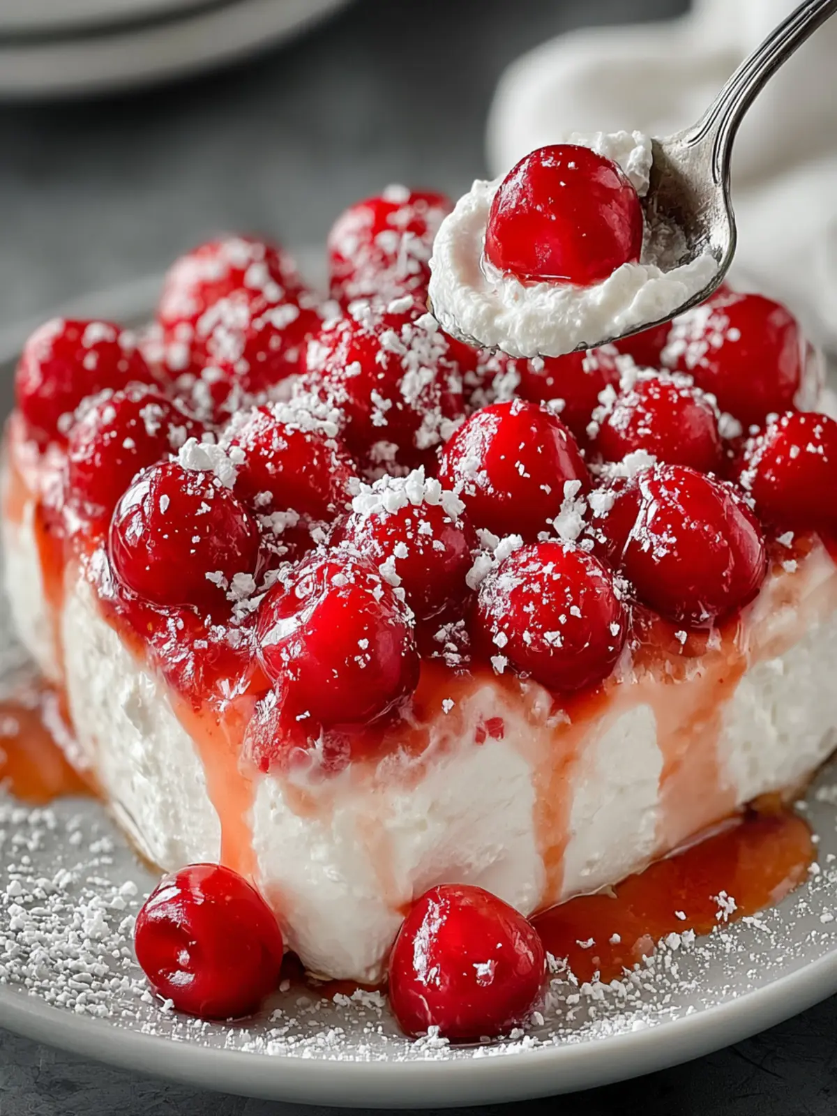 What’s more, Cherries in the Snow is versatile. It shines in any season, whether as a light summer treat or a delightful holiday dessert, making it a year-round favorite. Plus, the vibrant colors make it visually stunning, making it perfect for gatherings or just a cozy night in.
