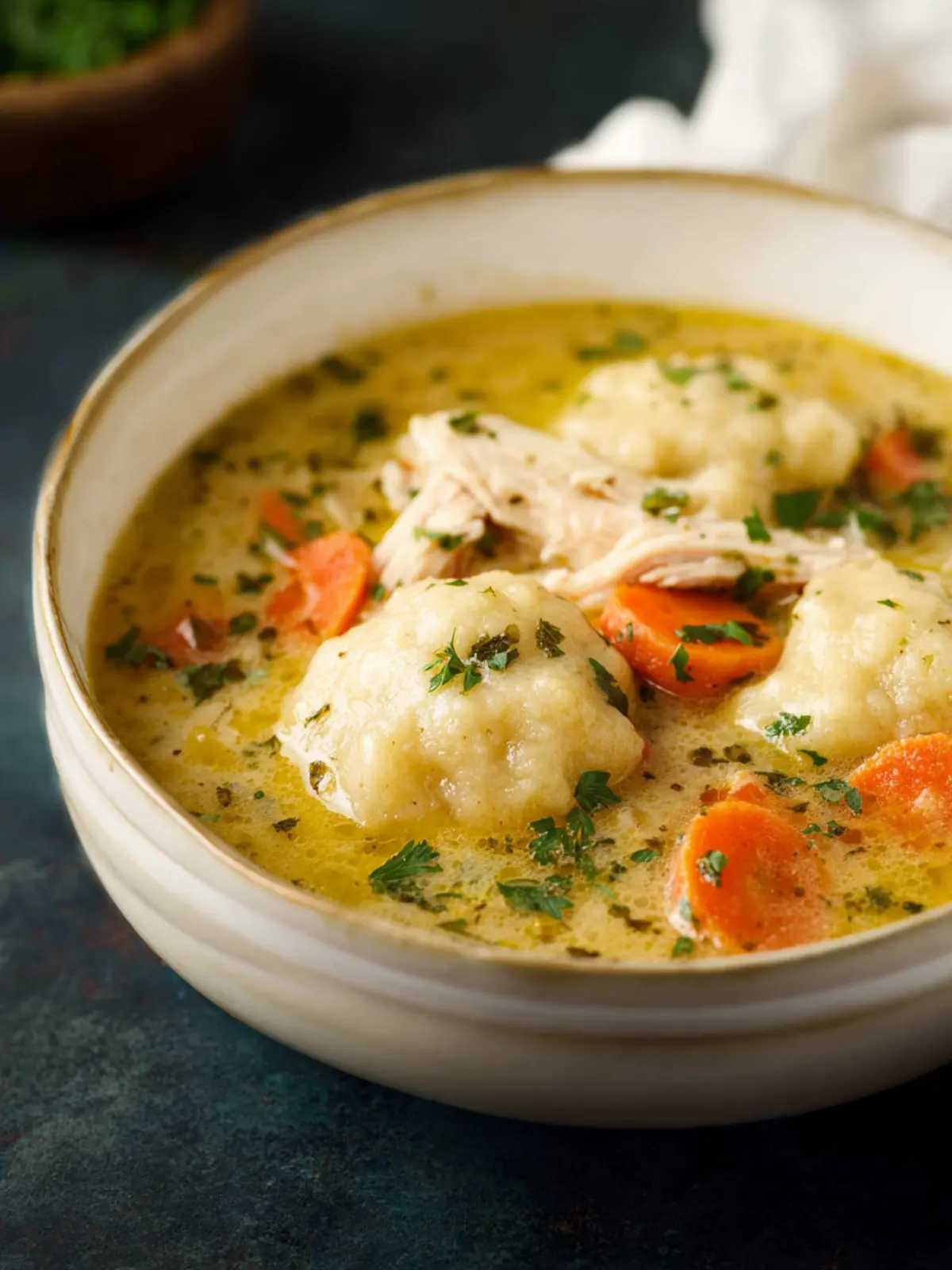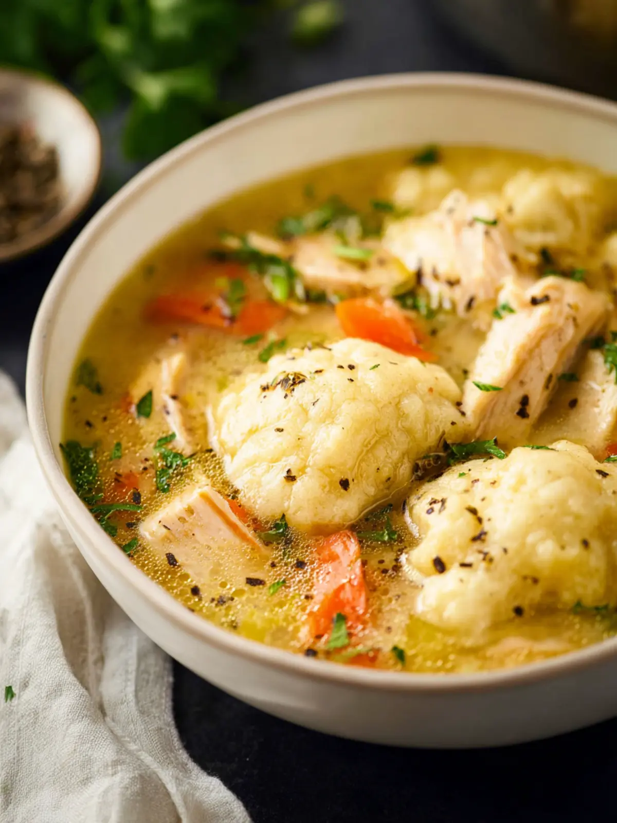 A comforting chicken and dumplings soup that is hearty and full of flavor.