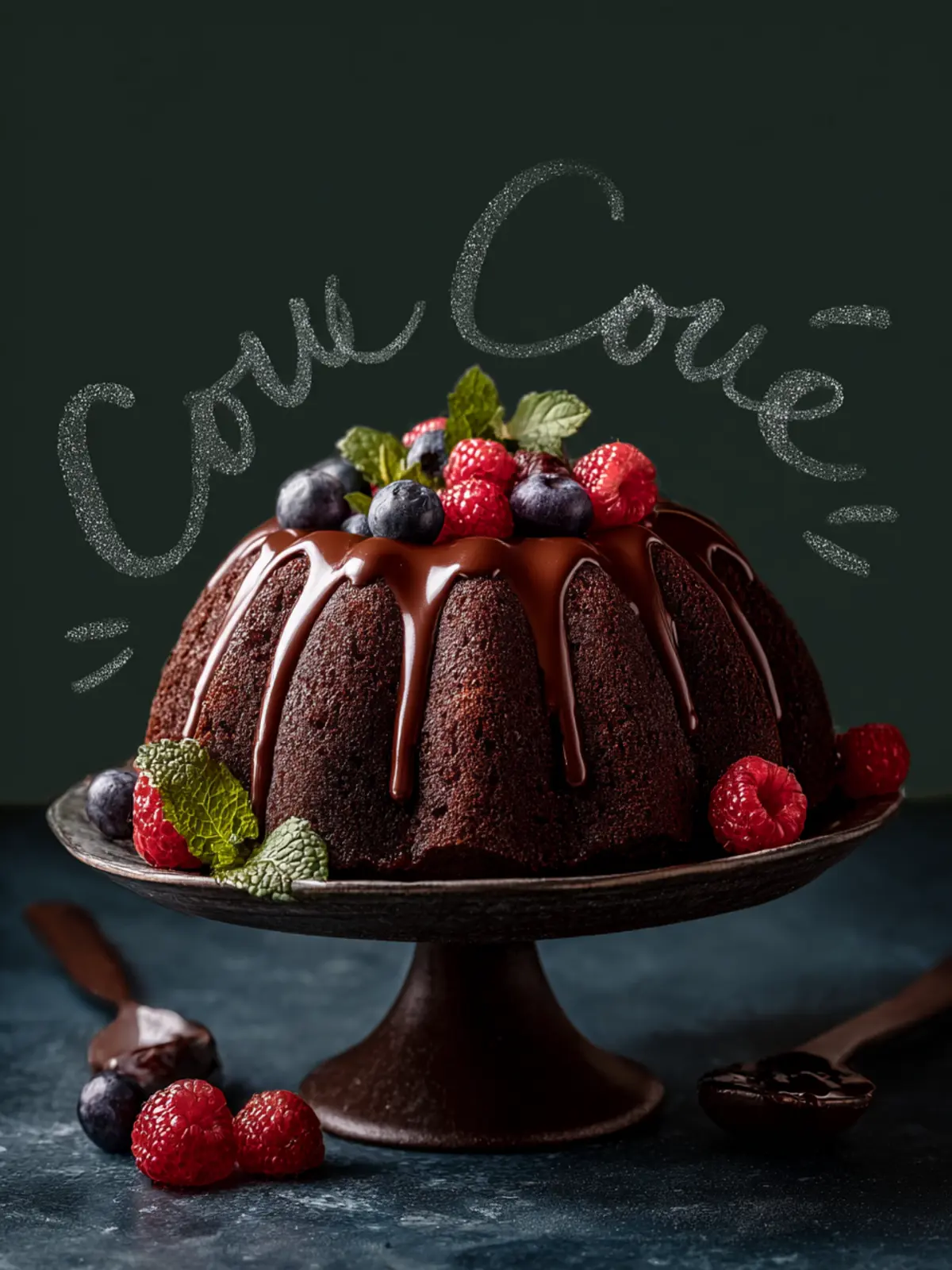 A deliciously rich chocolate bundt cake topped with smooth ganache.