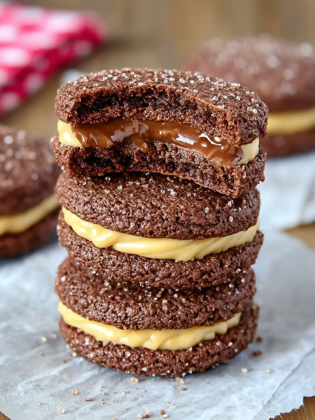 Caramel Filling: I recommend a rich caramel sauce that’s not too runny. It should complement the chocolate and add a gooey sweetness that brings the sandwich cookies to life.