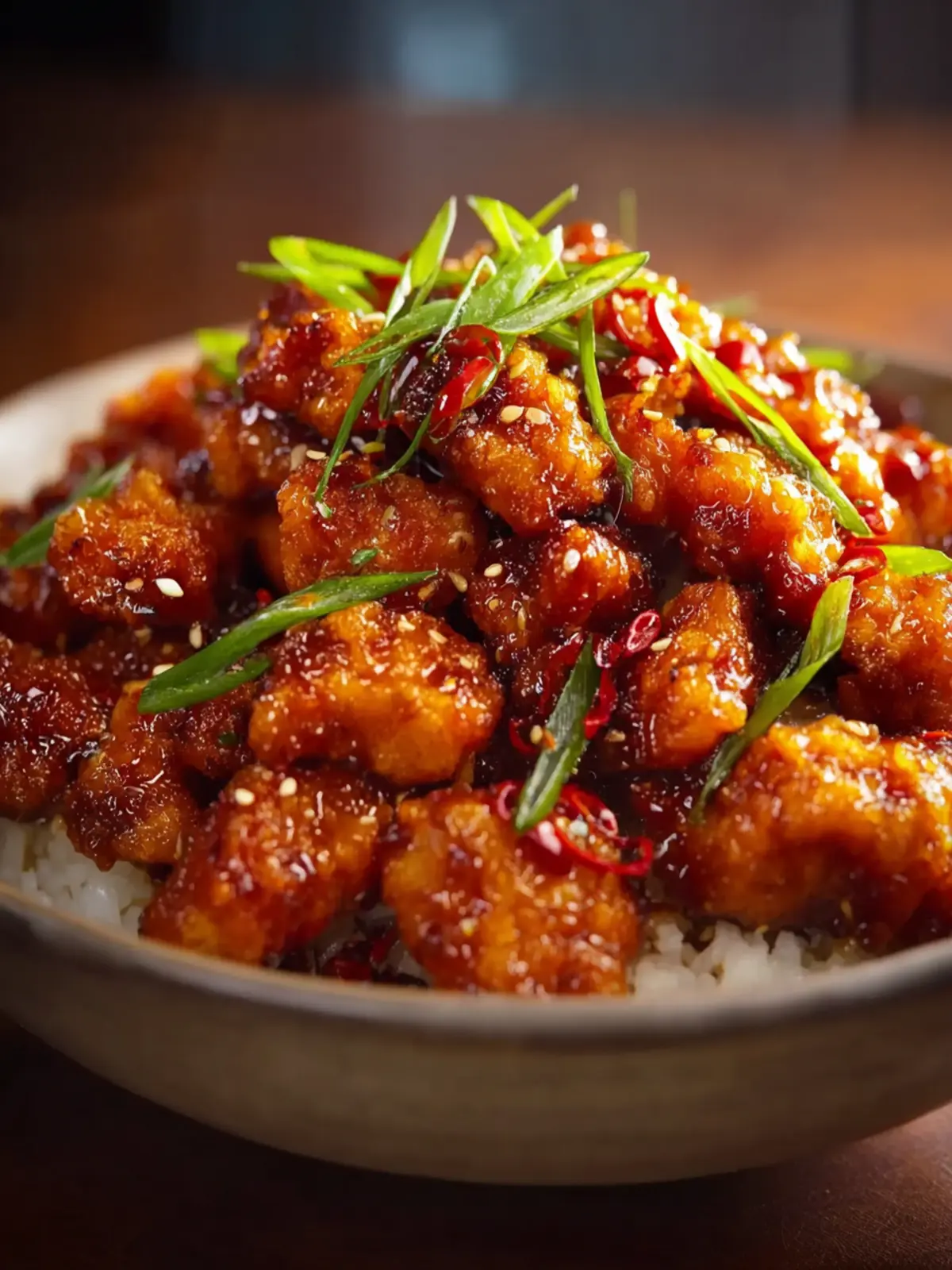 - Combine and Serve: Toss the crispy chicken pieces in the hot honey garlic sauce until well coated. Garnish with sliced green onions and sesame seeds if desired. Serve immediately over steamed rice or noodles.