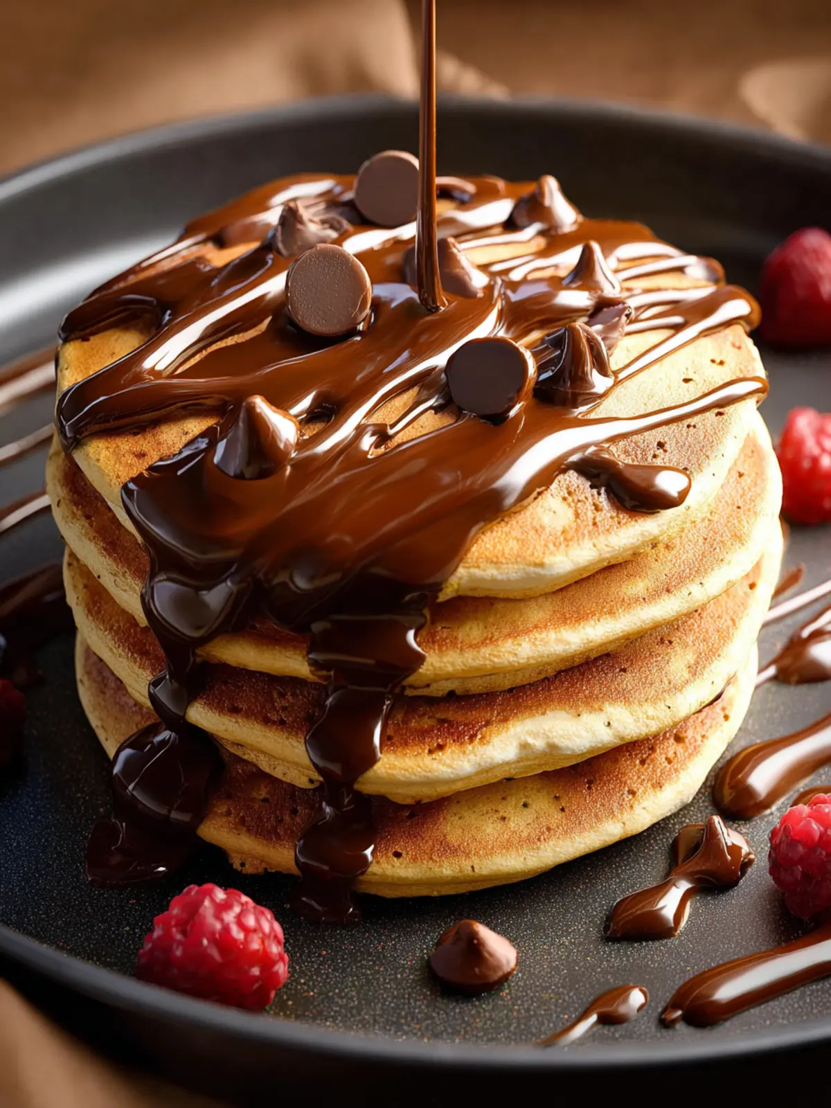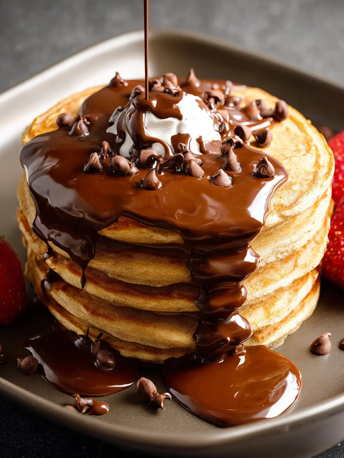 - These pancakes pair wonderfully with whipped cream or additional chocolate chips on top.
