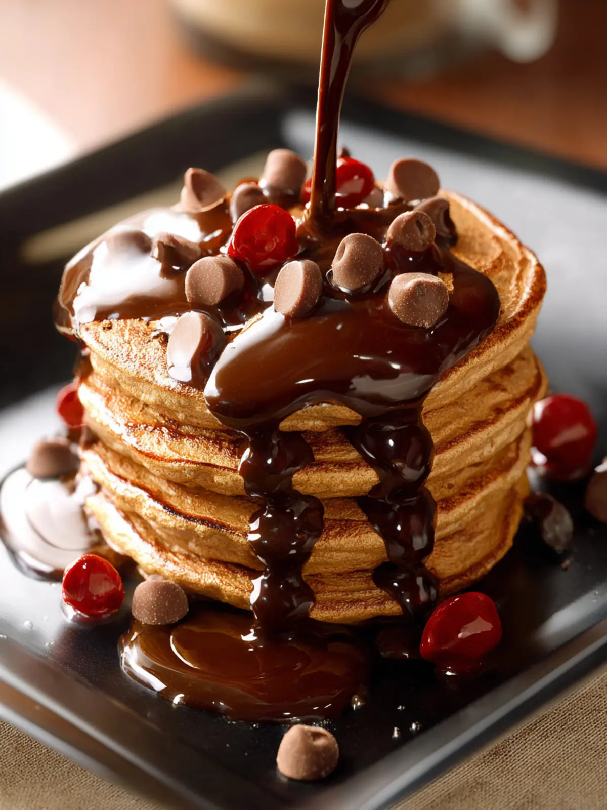 Chocolate Chip Pancakes with Mocha Syrup
