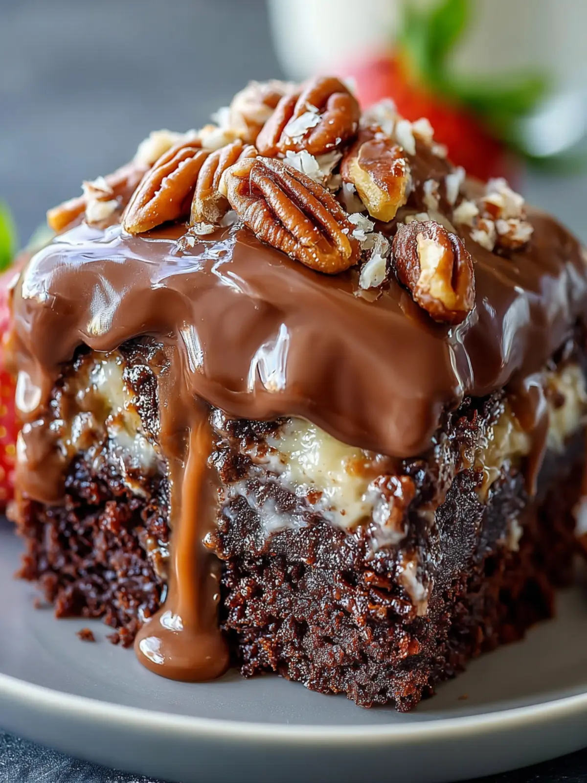 While the classic German chocolate adds a unique flavor, feel free to experiment! You can use semi-sweet or dark chocolate for a richer taste. Just keep in mind that this may alter the cake’s sweetness and texture slightly. Whether you stick to the traditional recipe or venture into new chocolate territories, the Mouth-Watering German Chocolate Poke Cake is sure to thrill your taste buds!