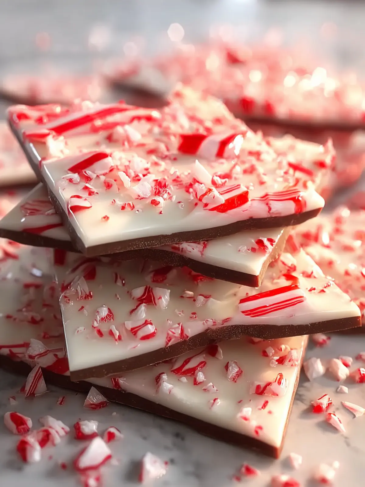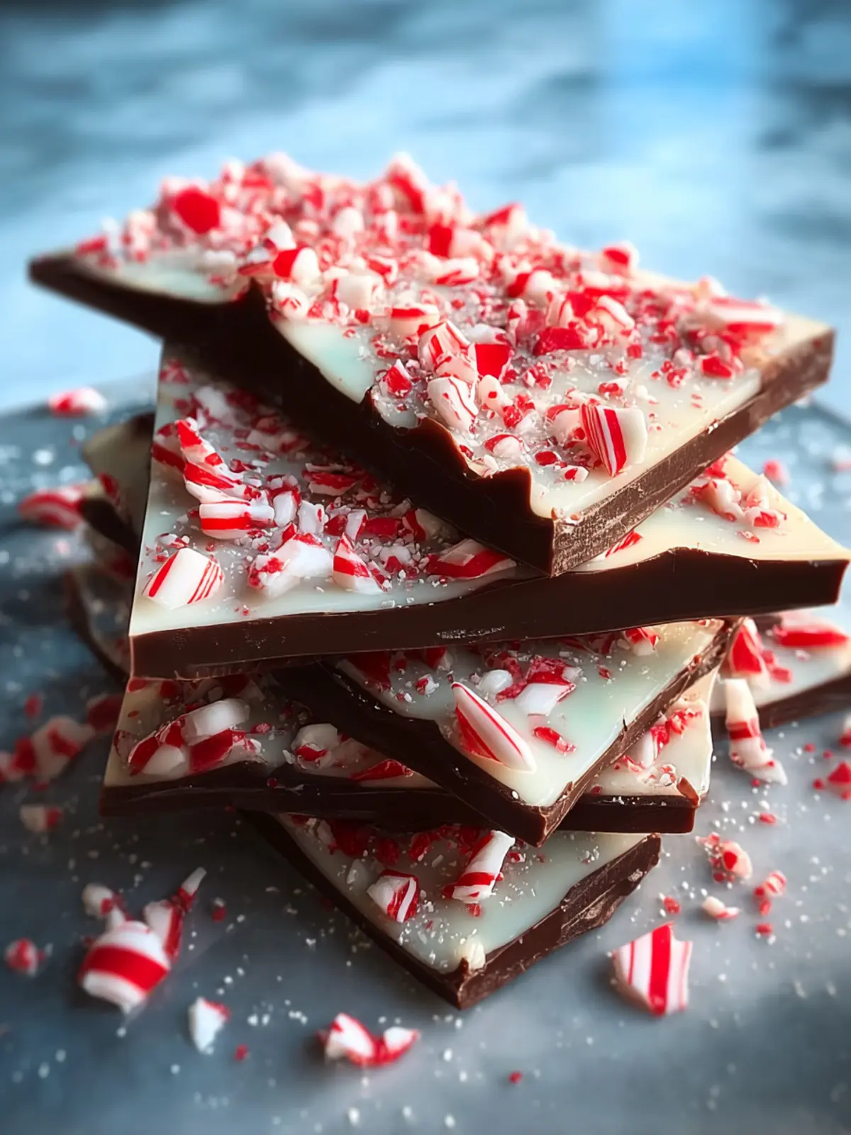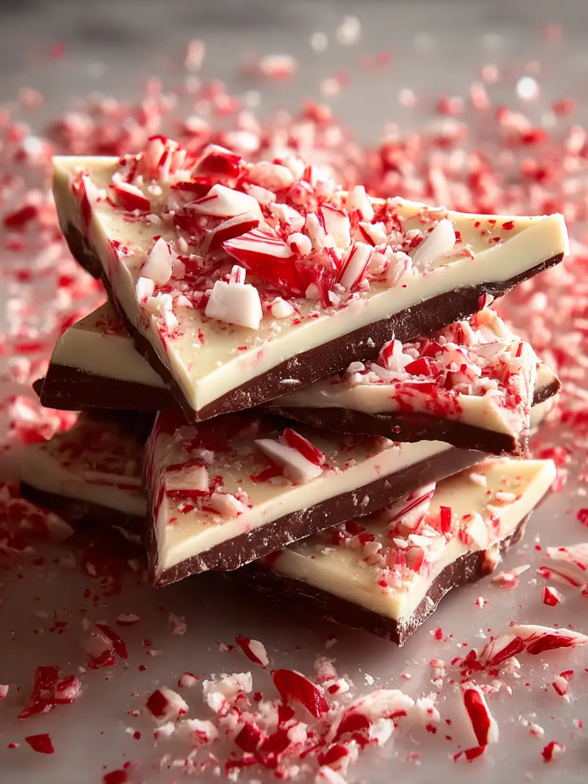 A festive and delicious peppermint chocolate bark, perfect for the holidays or any special occasion.