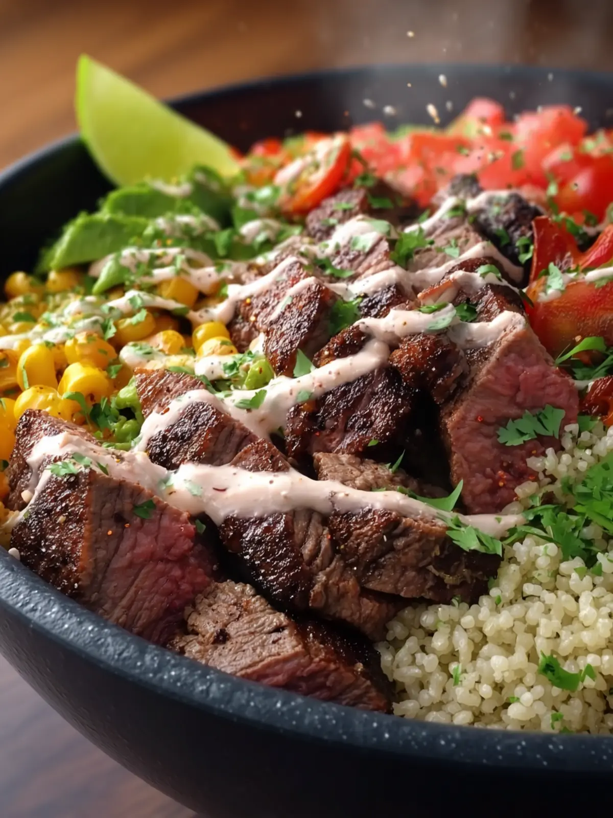 Bold Flavors: With its spicy seasoning and juicy steak, this bowl delivers a punch of flavor in every bite. The zesty lime and savory spices elevate the dish, making each mouthful a taste adventure. Who doesn’t love a meal that feels like a little fiesta?